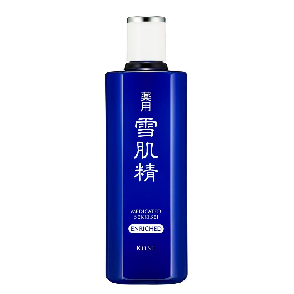 薬用 雪肌精 エンリッチ (しっとり) (医薬部外品) : 360mL 7,500円 (税抜) 。自然のめぐみ、明るい透明感。薬用雪肌精は、東洋で使われている植物成分に着目。しっとりとした感触で、紫外線を受けた肌にも豊かなうるおいをあたえます。日やけ、雪やけによるほてりや、肌あれ、乾燥を防ぐとともに、お化粧映えのする透明感の高い素肌にみちびきます。ハトムギ (苡仁) エキス、トウキ (当帰) エキス、メロスリア (白) エキス、バクモンドウ (麦門冬) エキス、テンニンカ (天人花) エキス、BG (1,3-ブチレングリコール) (保湿) 配合。ビッグサイズですので、首すじにもたっぷりお使いいただけます。