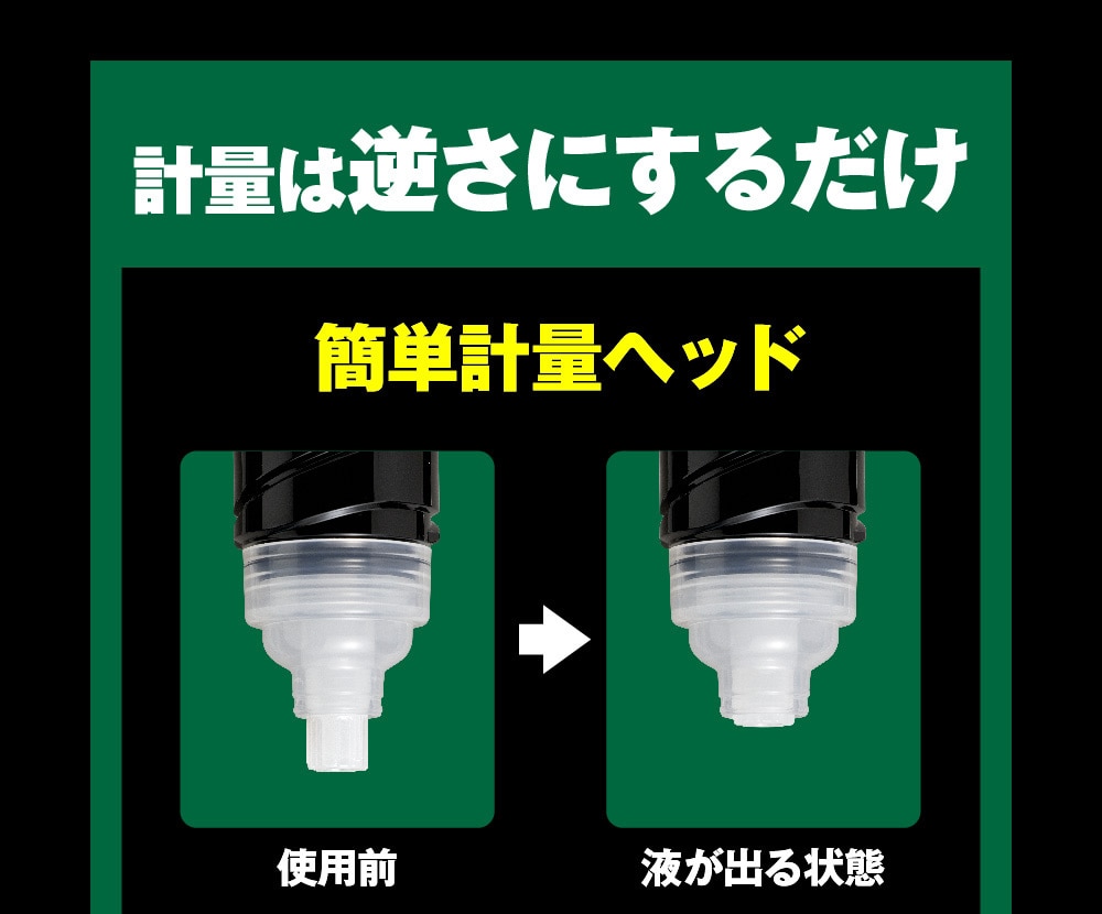注意1:同じ部分に長く押し当てたり、ボトルを斜めにして使用すると計量した薬液が流れ出ることがあります。