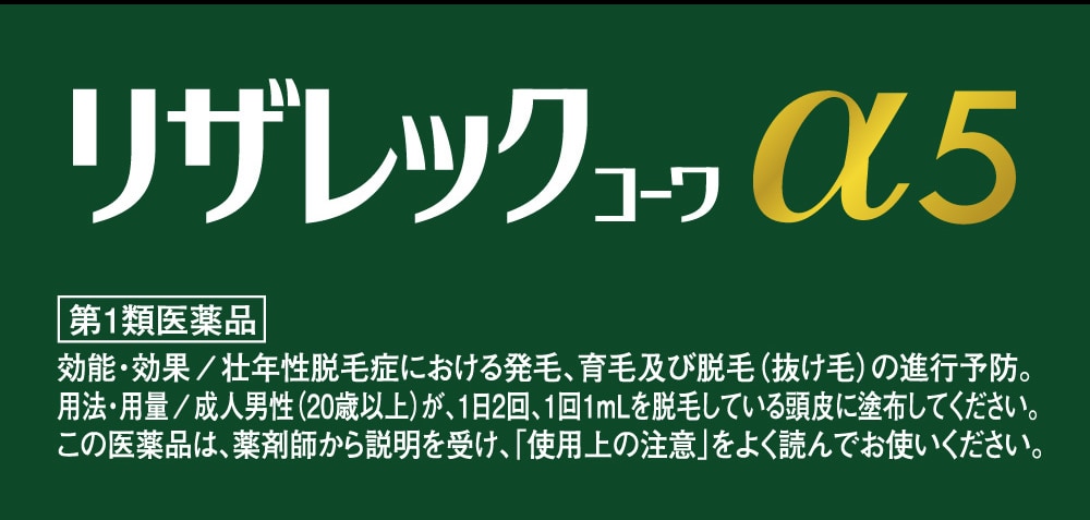 ミノキシジル・・・5.0g・・・発毛、育毛及び脱毛の進行を予防します。
