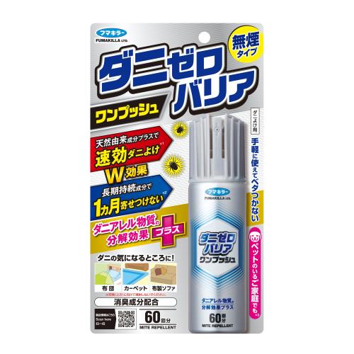 無煙タイプのダニよけ剤 ●天然由来成分プラスで速攻dニよけ*1。●長期持続成分で1ヵ月寄せ付けない*2。●ダニアレル物質の分解効果プラス。●消臭成分配合。●ベタつかない。*1:天然由来成分とフェノトリンによる噴射直後のダニよけ降下:2:フェノトリンによるダニよけ持続効果