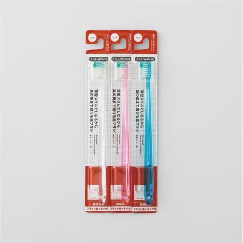 【歯垢除去】ヘッドの厚み3.25mmの薄型スリム歯ブラシ。お口の小さい方でも隅々まで磨けます。カラー毛部は、特殊なダイヤモンドフィラメントを使用。ダイヤ型の断面は歯間に入り、面は歯をなぞるように歯垢をかきとります。ハンドル部は、力が入ってもネックがしなって歯茎の負担をやわらげます。