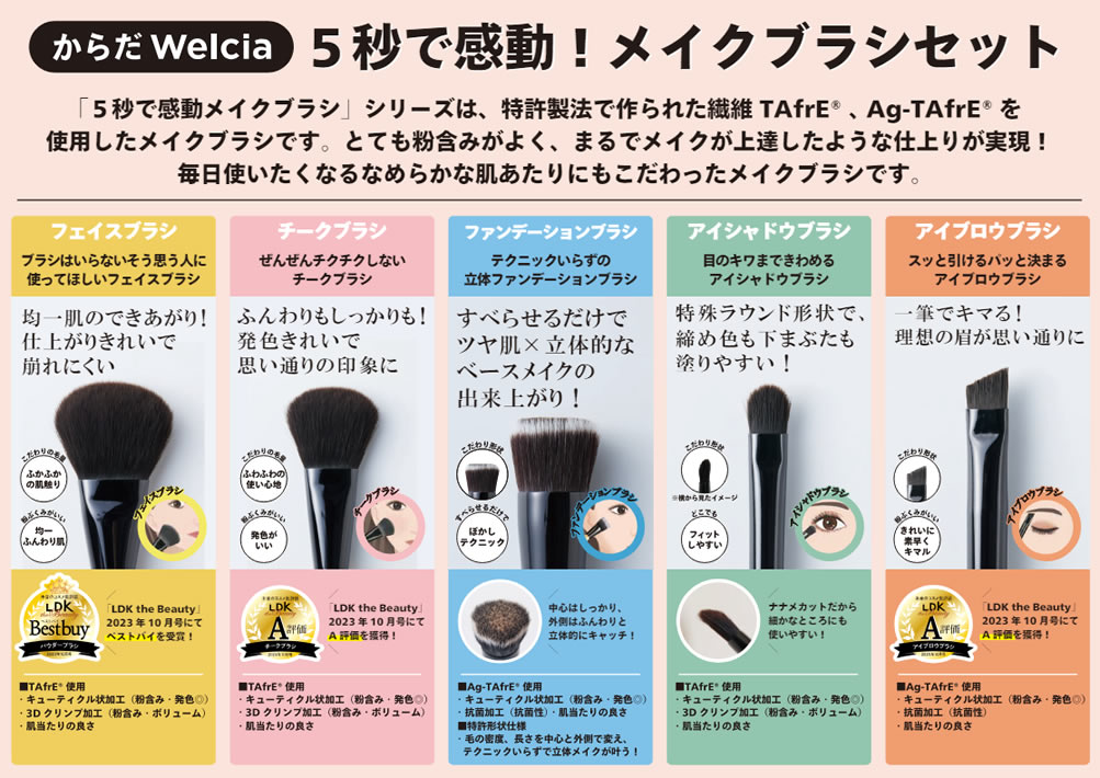 また、本音のコスメ批評誌『LDK the Beauty』にてフェイスブラシがベストバイ、 チークブラシ/アイブロウブラシがA評価を獲得しました(※2)。