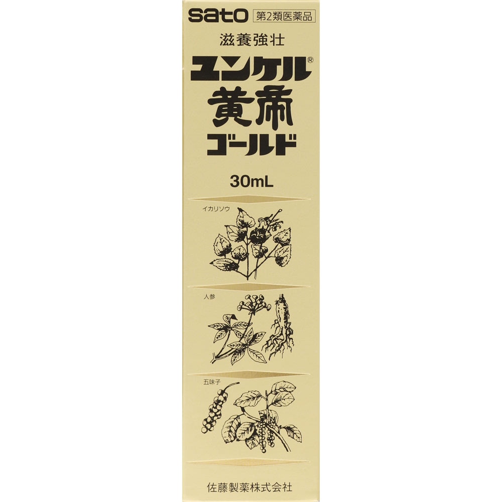 ユンケル黄帝ゴールドは、イカリソウ、ニンジン、ゴミシ、サンシュユ、肉ジュ蓉、反鼻の6種類の生薬にビタミンを配合したドリンクです。